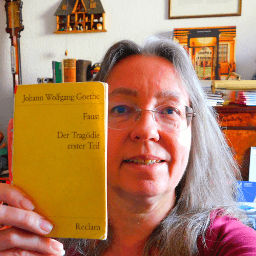 Goethe ging es vielleicht ähnlich, denn er hat bekanntlich dazu gleich mehrere Dramen zur Thematik beigesteuert. Ein weniger bekannter Funfact für uns Übersetzende ist, dass Goethe sein Leben lang gern und viel übersetzt hat, aus „meinen“ Sprachen Italienisch, Englisch und Französisch, aber auch noch Latein und Hebräisch, tja, da kann ich nicht mehr mithalten. Aber nicht nur das, Übersetzen an sich war für ihn ein Thema und er hat etliche kluge Aufsätze dazu geschrieben, um die Arbeit der Übersetzenden sichtbar zu machen. (Das mach ich übrigens auch, im Verein Weltlesebühne mit Veranstaltungen rund ums Literaturübersetzen und einem Youtube-Kanal)
