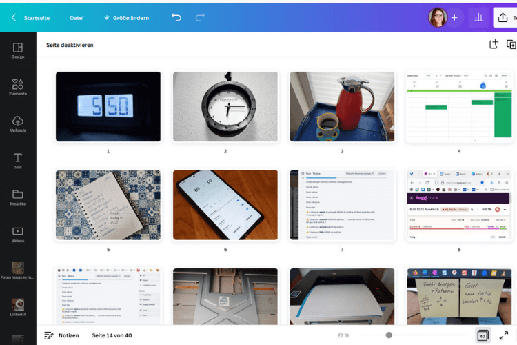 Mit Canva lassen sich hübsche Designs für Social Media erstellen, sowie auch Logos, Visitenkarten und Flyer gestalten. PowerPoint war mir schon immer unsympathisch. Inzwischen bereite ich alle Präsentationen und Handouts für meine Webinare und Workshops in Canva vor.